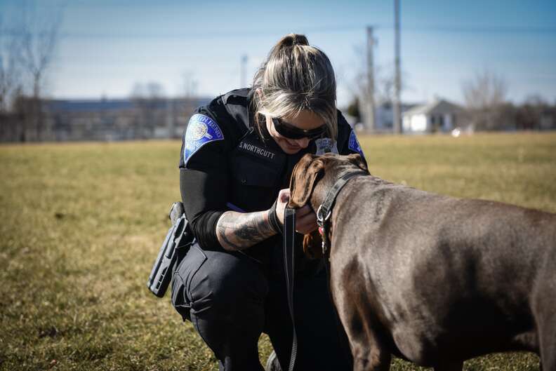 When South Bend Police Officer Stephanie Northcutt arrived to the scene, she took a new approach. Squatting down with an outstretched hand, Northcutt invited the fearful dog to come to her, close enough to receive a pet.