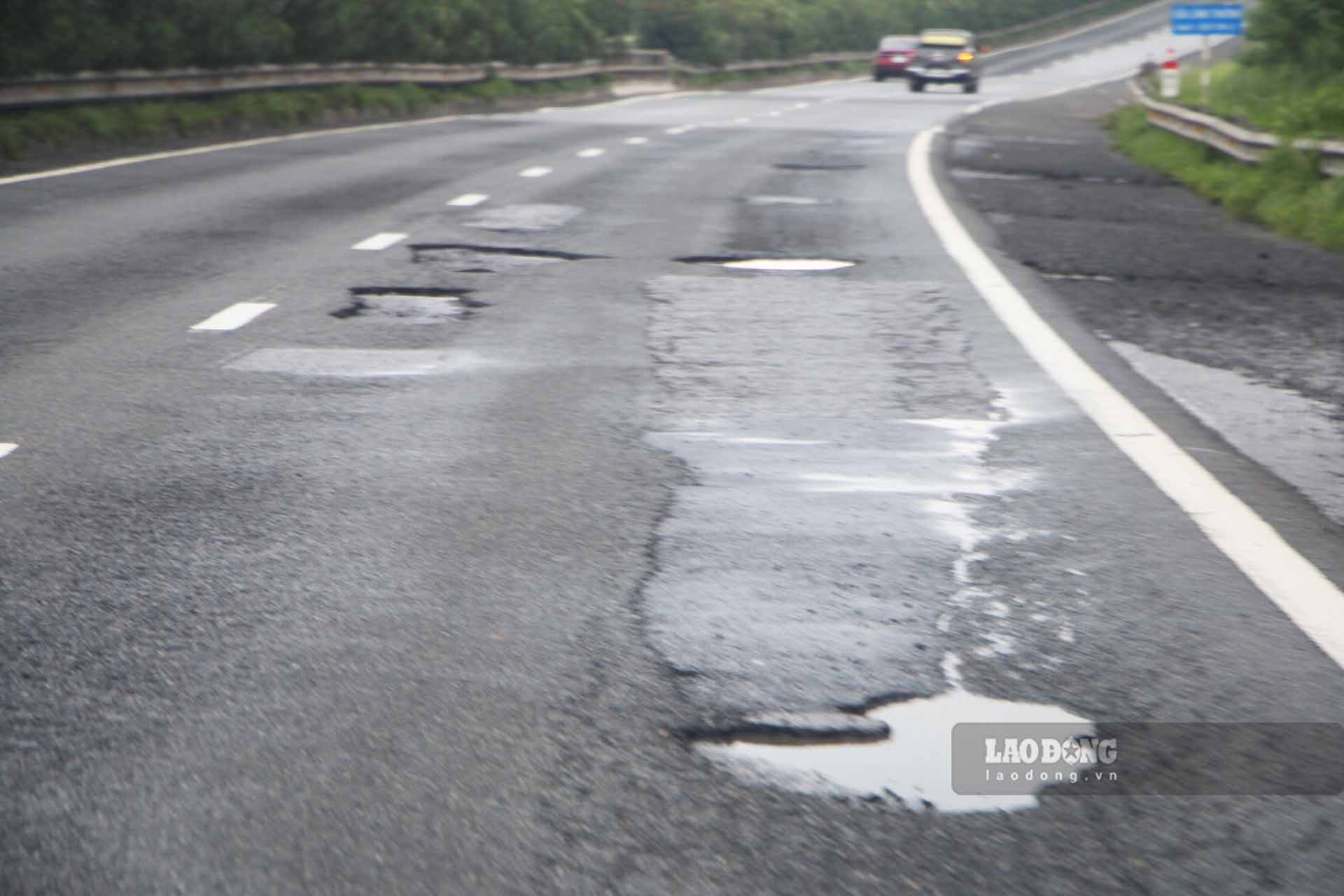Ngày 28.8, ghi nhận của PV Báo Lao Động trên tuyến cao tốc Nội Bài – Lào Cai xuất hiện nhiều hư hỏng, mặt đường bị lún, nứt vỡ hình thành những “ổ gà” trũng sâu xuống lòng đường và chưa được khắc phục.