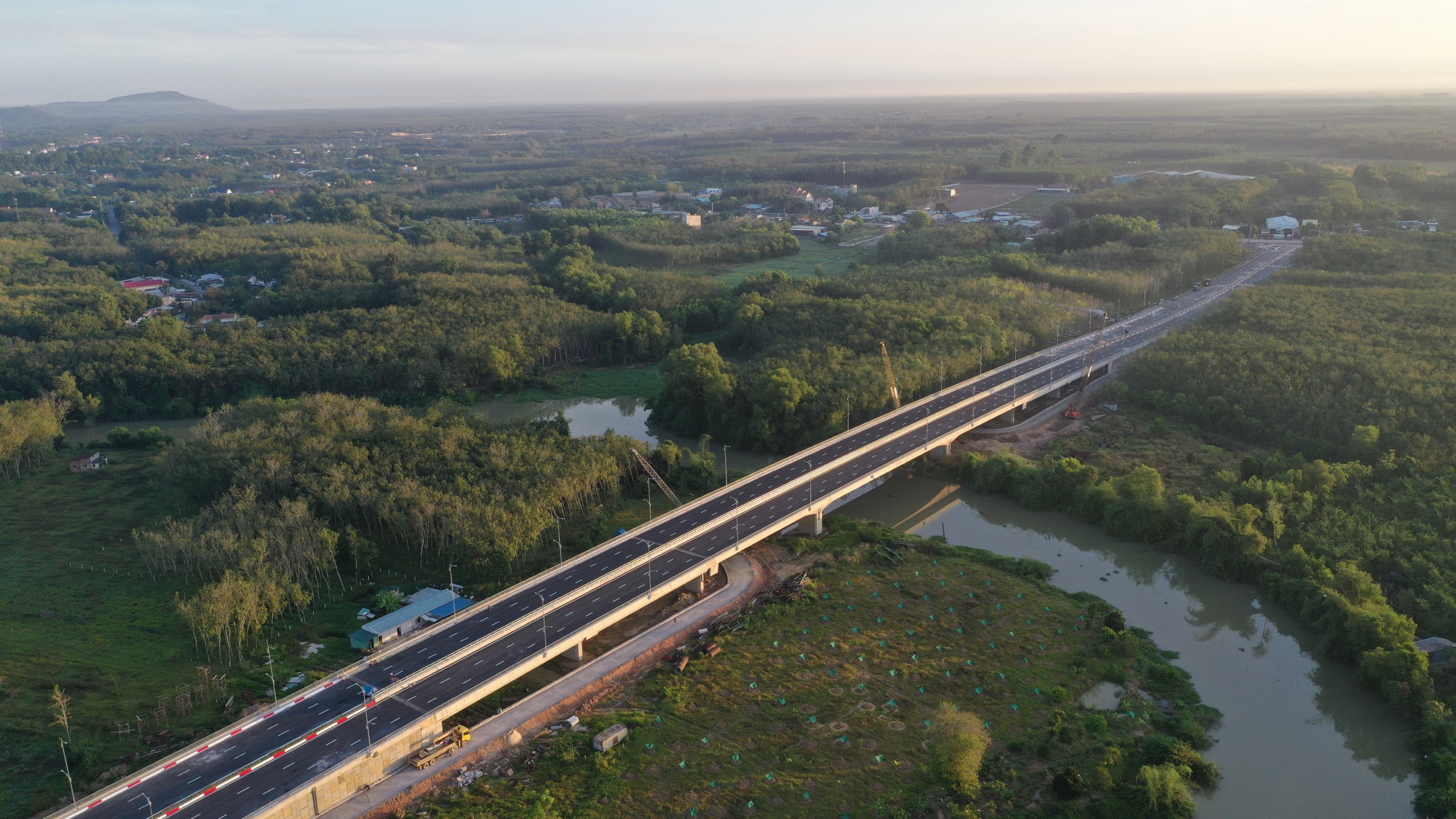 Cây cầu thứ ba nối Bình Dương – Tây Ninh (tại huyện Dầu Tiếng và huyện Dương Minh Châu) có sáu làn xe, được đầu tư đồng bộ với cầu kết nối sẽ rút ngắn khoảng cách và thời gian lưu thông của người dân và vận chuyển hàng hóa – Ảnh: BÁ SƠN
