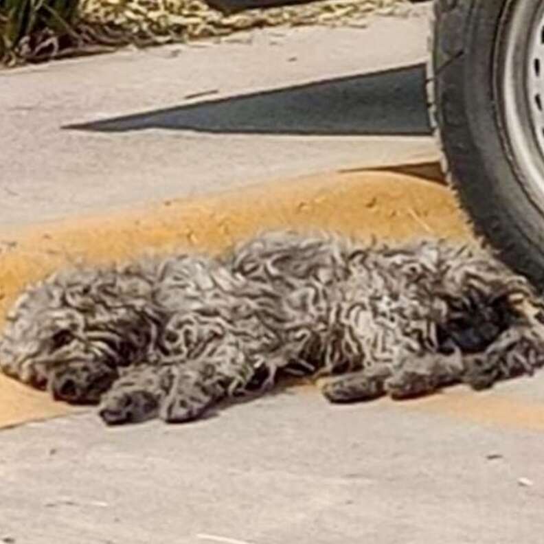 The Good Samaritan soon identified the pile of fluff as a dog, and they rushed to his side to help. They weren’t sure how long he’d been out in the sun, but he barely picked his head up when they approached.