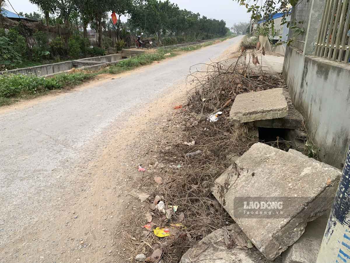 Đáng nói, hệ thống rãnh thoát nước dọc tuyến nhiều đoạn chưa được hoàn thiện, nắp đậy bị xô lệch; trên mặt cống, nhiều đoạn sắt nhô lên khỏi mặt bê tông, tiềm ẩn nguy cơ gây tai nạn, nhất là vào ban đêm.